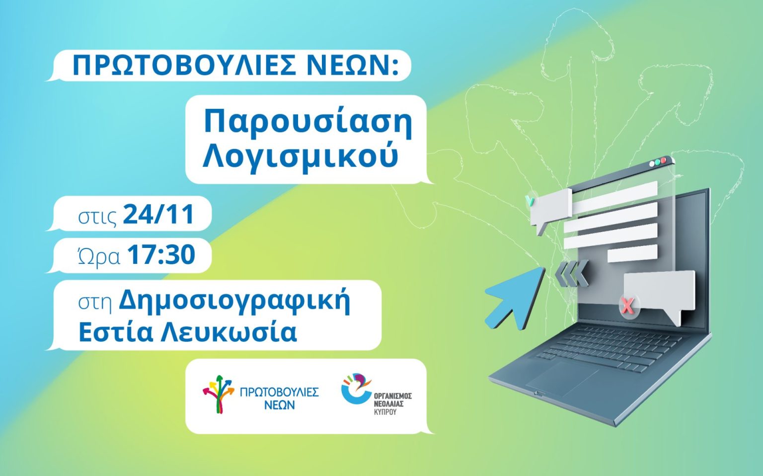 Σε νέα εποχή περνούν οι «Πρωτοβουλίες Νέων», το χρηματοδοτικό Πρόγραμμα του Οργανισμού Νεολαίας Κύπρου, με την εφαρμογή και λειτουργία νέου λογισμικού, το οποίο θα παρουσιαστεί στις 24 Νοεμβρίου.