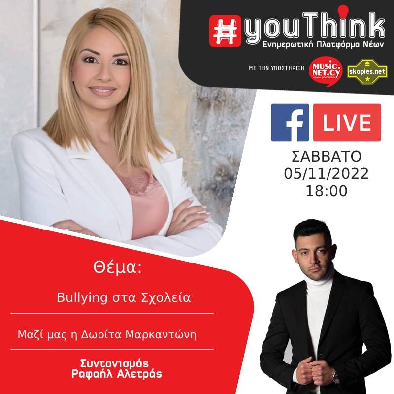 Η εκπομπή YouThink εκπροσωπεί το τίτλο της Youth και Think! Αυτό συνεπάγεται σε συνέντευξη, ενημέρωση και ψυχαγωγία νεολαίας. Η ιδέα αυτή προέκυψε από την εμπλοκή μου με την νεολαία και μέσω αυτής, την κατανόηση από έλλειψη ενημέρωσης σε ζητήματα που αφορούν τους νέους. Λόγω κάποιων σεμιναρίων Ραδιοφωνικού Παραγωγού που παρακολούθησα από τον Άγγελο Ιακωβίδη του Klik fm, συνδυάζοντας τις δυνατότητες μου και τις γνώσεις μου, σκέφτηκα να δημιουργήσω μια ενημερωτική πλατφόρμα νέων σε στυλ ραδιοφωνικής εκπομπής και οπτικοακουστικού μέσου (Facebook live streaming) καθώς και σελίδες στα μέσα κοινωνικής δικτύωσης, με σκοπό την ενημέρωση των νέων για θέματα που μας απασχολούν και μας προβληματίζουν. Εδώ θέλω να ευχαριστήσω δημόσια την στήριξη του Άγγελου Ιακωβίδη που με βοήθησε στην όλη προσπάθεια δημιουργίας της νεανικής πλατφόρμας ώστε να γίνει η ιδέα μου πραγματικότητα. Το YouThink έχει φιλοξενήσει μέχρι στιγμής περίπου 40 άτομα. Ο κάθε καλεσμένος είναι μοναδικός και εμπειρογνώμονας στο θέμα που συζητάμε.