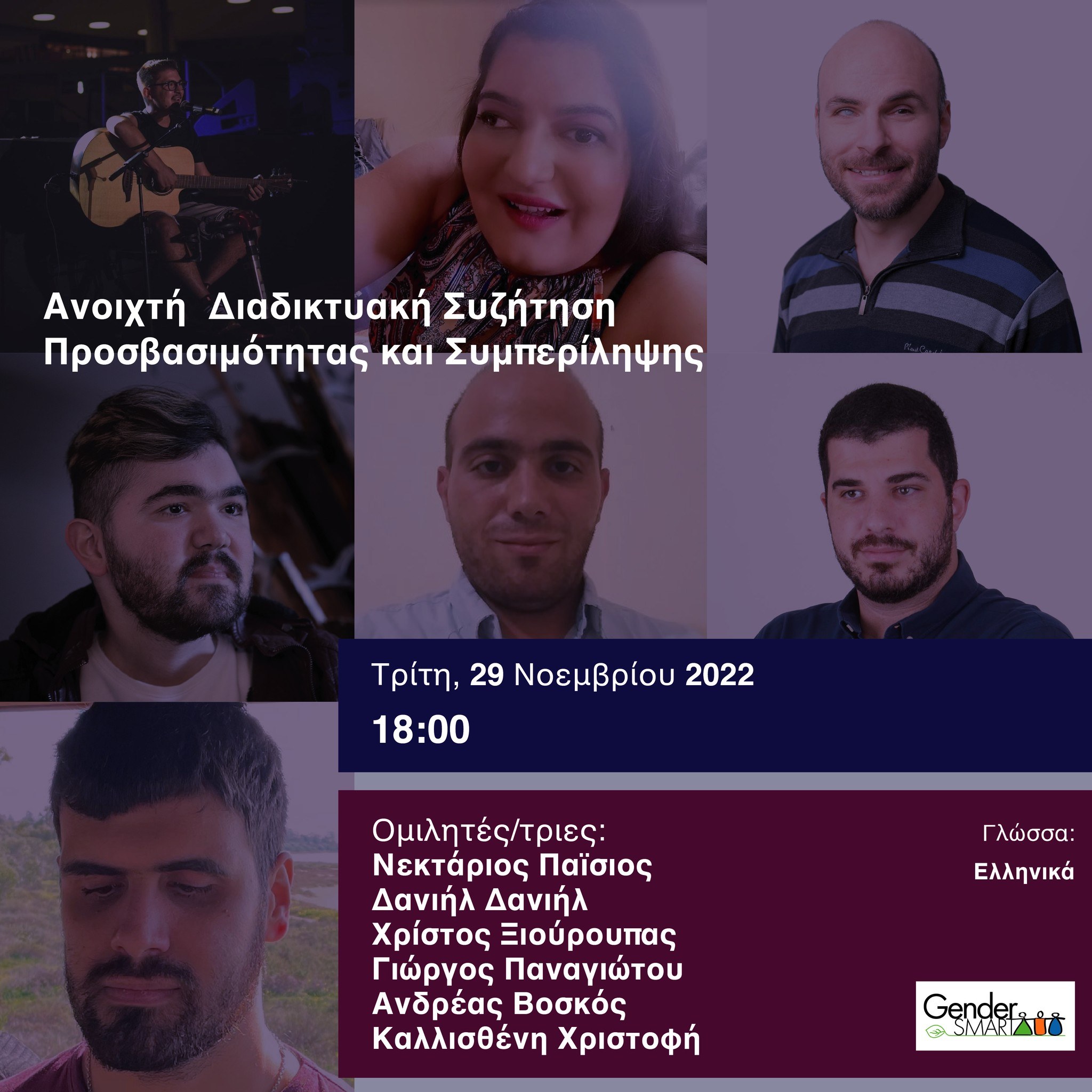 Με επιτυχία διεξήχθη η ανοικτή διαδικτυακή συζήτηση προσβασιμότητας και συμπερίληψης που διοργάνωσε το Δίκτυο Ενίσχυσης και Ανάπτυξης της Μάθησης του Τεχνολογικού Πανεπιστημίου Kύπρου. Συντονιστές της εκδήλωσης ήταν οι Γιώργος Παναγιώτου και Ραφαήλ Σοφοκλέους, εκπρόσωποι των προπτυχιακών και μεταπτυχιακών φοιτητών/τριών αντίστοιχα υπό την καθοδήγηση των συντονιστριών του Δικτύου, της Δρα Αντιγόνης Παρμαξή και της Δρα Άννας Νικολάου. Ομιλητές/τριες ήταν οι Νεκτάριος Παϊσιος, Δανιήλ Δανιήλ, Χρίστος Ξιούρουπας, Γιώργος Παναγιώτου, Ανδρέας Βοσκός και Καλλισθένη Χριστοφή, άτομα με οπτικές και κινητικές αναπηρίες. Σύντομο χαιρετισμό απηύθυνε επίσης η Δρ Χριστιάνα Κούτα εκ μέρους της Επιτροπής Ισότητας του Πανεπιστημίου.