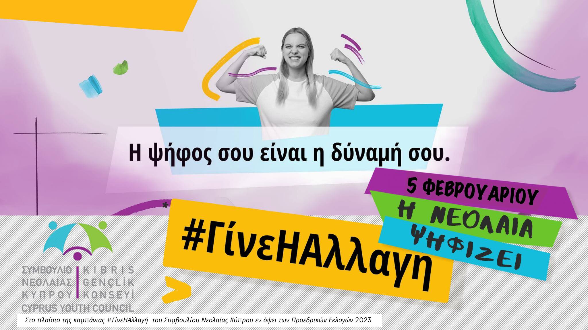 Το Συμβούλιο Νεολαίας Κύπρου, στο πλαίσιο της καμπάνιας #ΓίνεΗΑλλαγή, εν όψει των Προεδρικών Εκλογών 2023, συνεχίζει την προσπάθεια προσέλκυσης περισσότερων νέων στις εκλογικές διαδικασίες και στα κέντρα λήψης αποφάσεων.